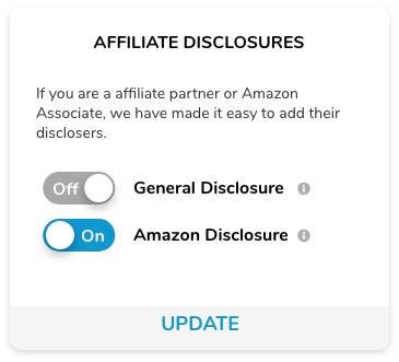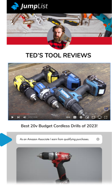 Transparency is key when it comes to disclosing commissions earned from purchases made through your JumpLists. Not only is it a legal requirement mandated by the FTC and affiliate marketing platforms, but it also builds trust with your viewers. JumpList simplifies this process by offering two disclosure options - one that complies with FTC and affiliate platform guidelines, and an additional one required specifically for Amazon Associates.